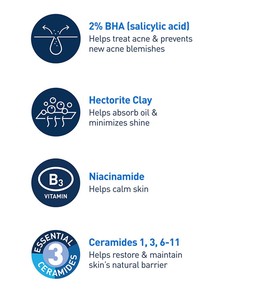 CeraVe is the #1 dermatologist-recommended cleanser brand for acne*, and our Acne Control Cleanser with 2% salicylic acid is formulated to clear acne, reduce blackheads and improve the appearance of pores, while purifying clay helps absorb excess oil.